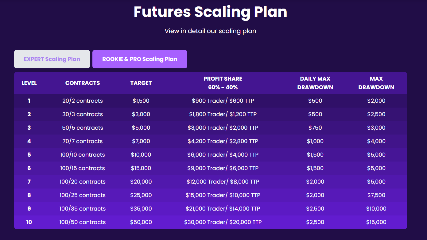 - Up to 70% profit split – Trade responsibly and consistently and receive up to 70% of your If you consistently generate profits on your Account, they can scale your account according to their Scaling Plan.
