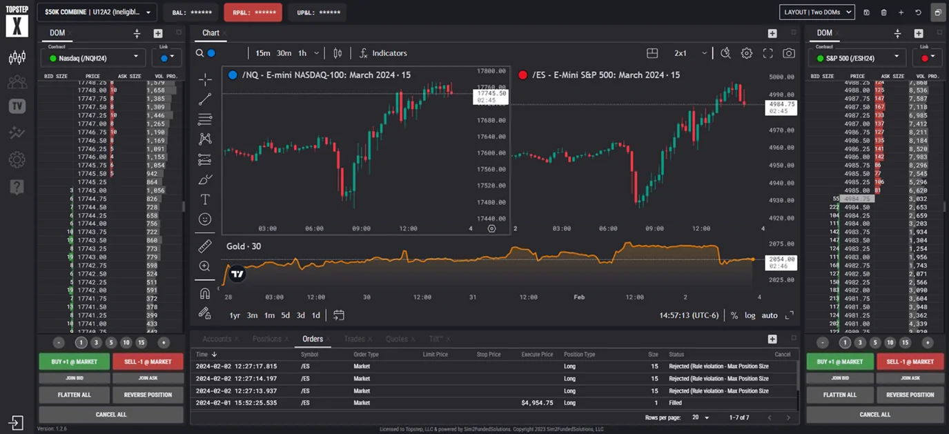 Topstep provides a variety of built-in trading platforms which can be used with both simulations and funded accounts.